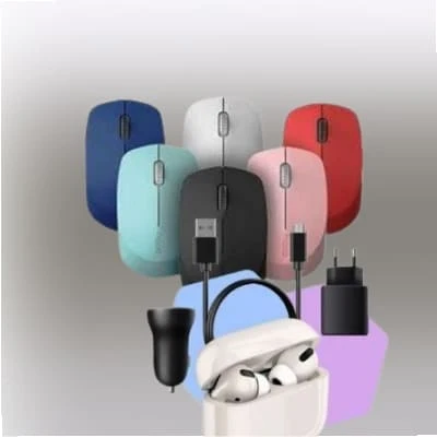 Complementos: mouses precisos, cargadores rápidos y protección.